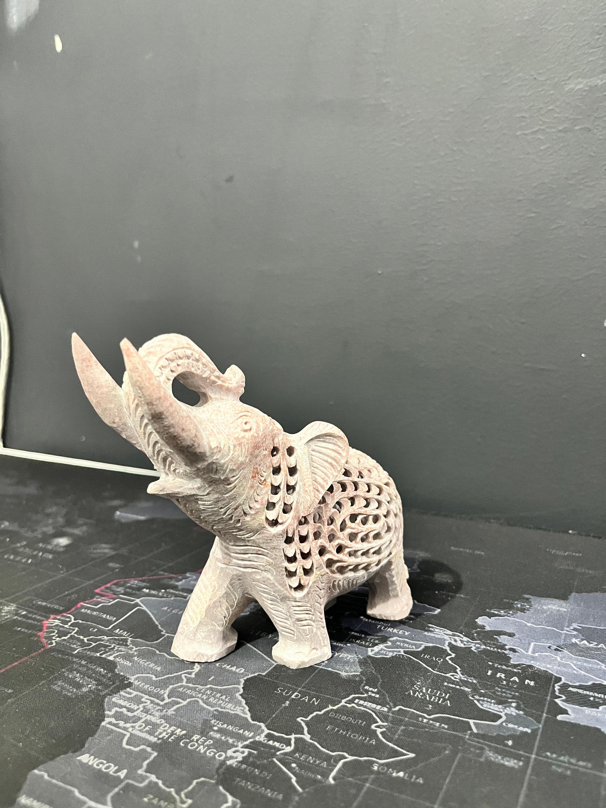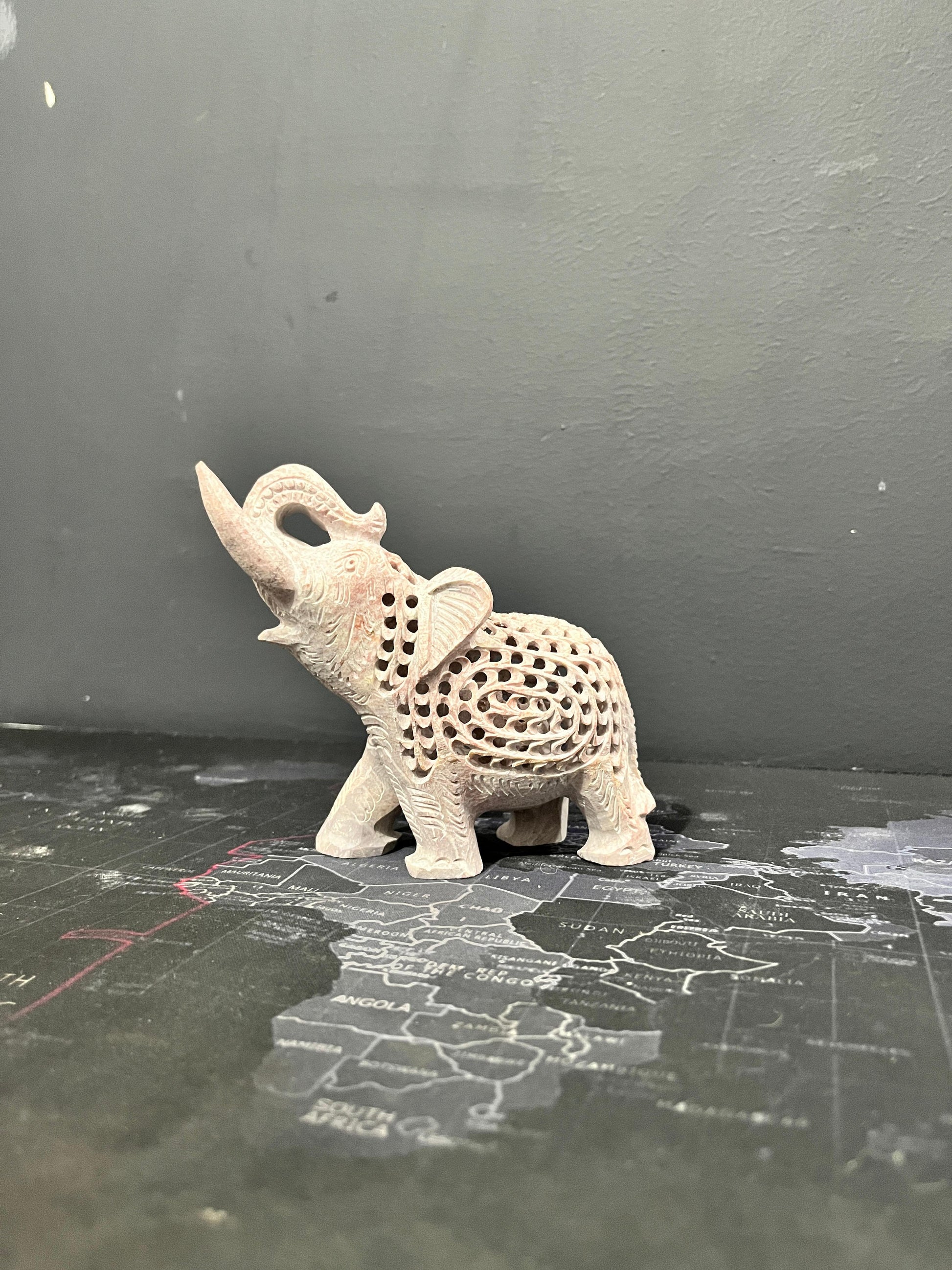 Craftsmanship: Intricately carved elephant featuring the traditional “elephant inside elephant” jali work, a unique art form showcasing the artisan’s mastery.