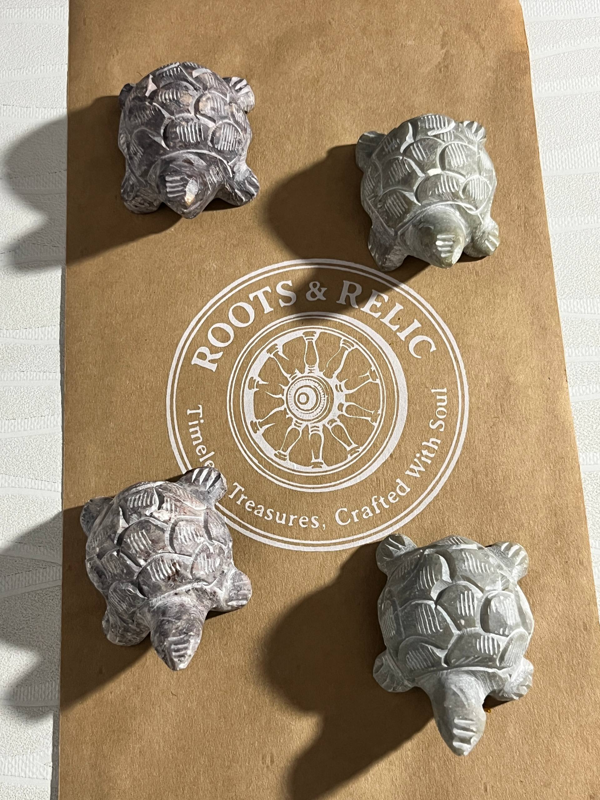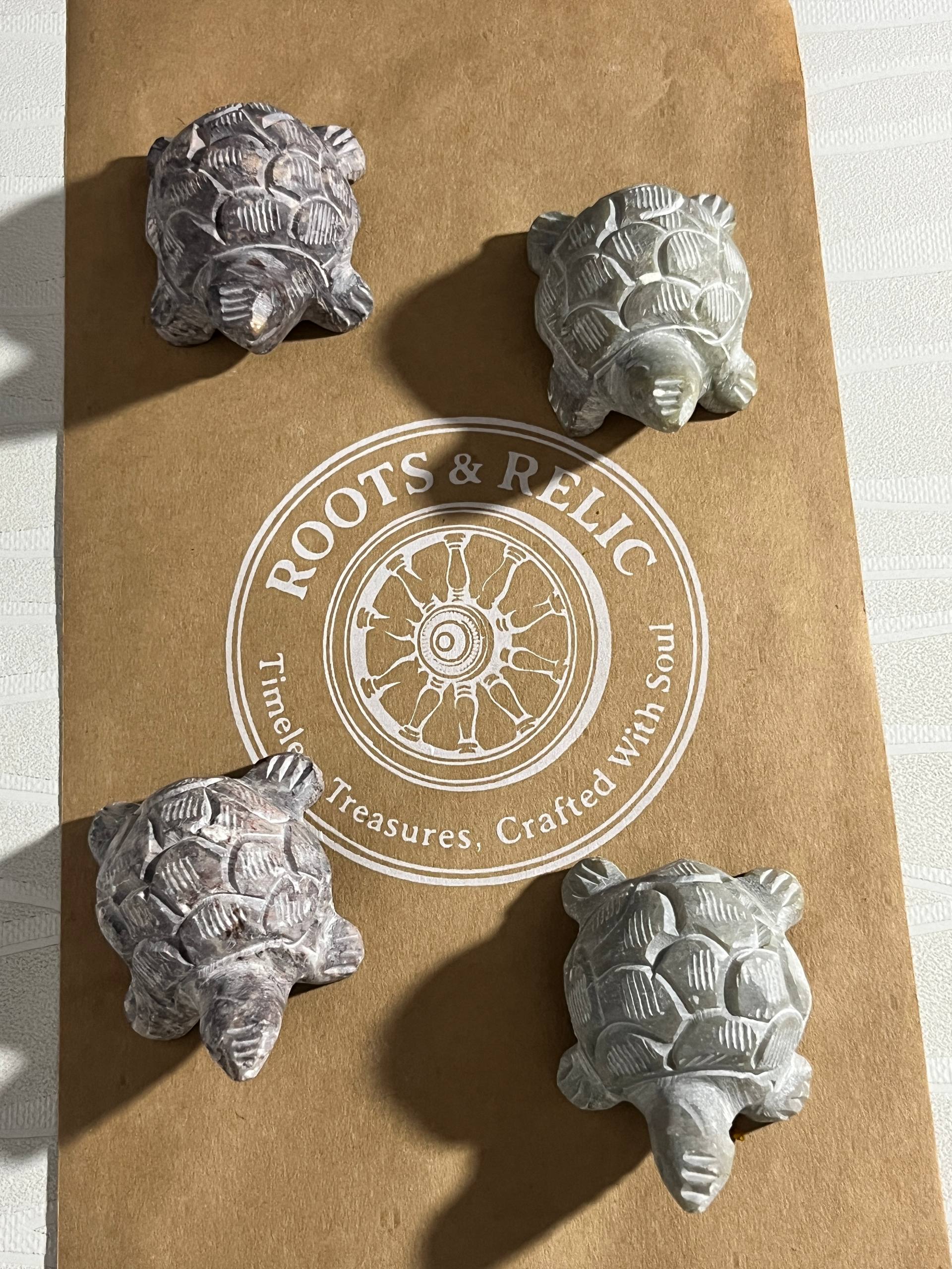 Hand-Carved Soapstone Tortoise Figurine | Vastu & Home Décor ,2PC